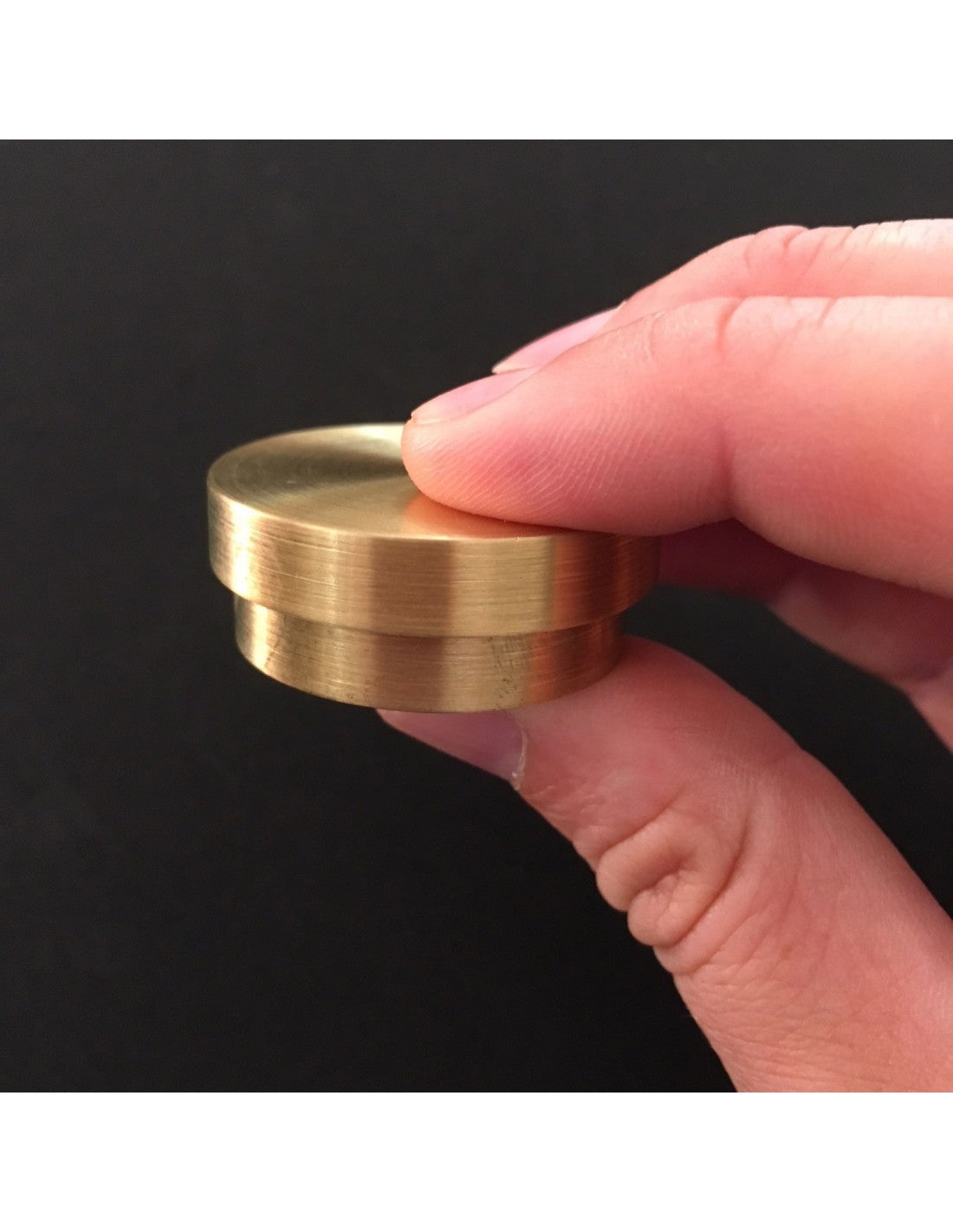 Personally I use the 50p coin. Ideally I think you should use your local currency and I like the contrast of the shape and silver 50p to the round brass box.